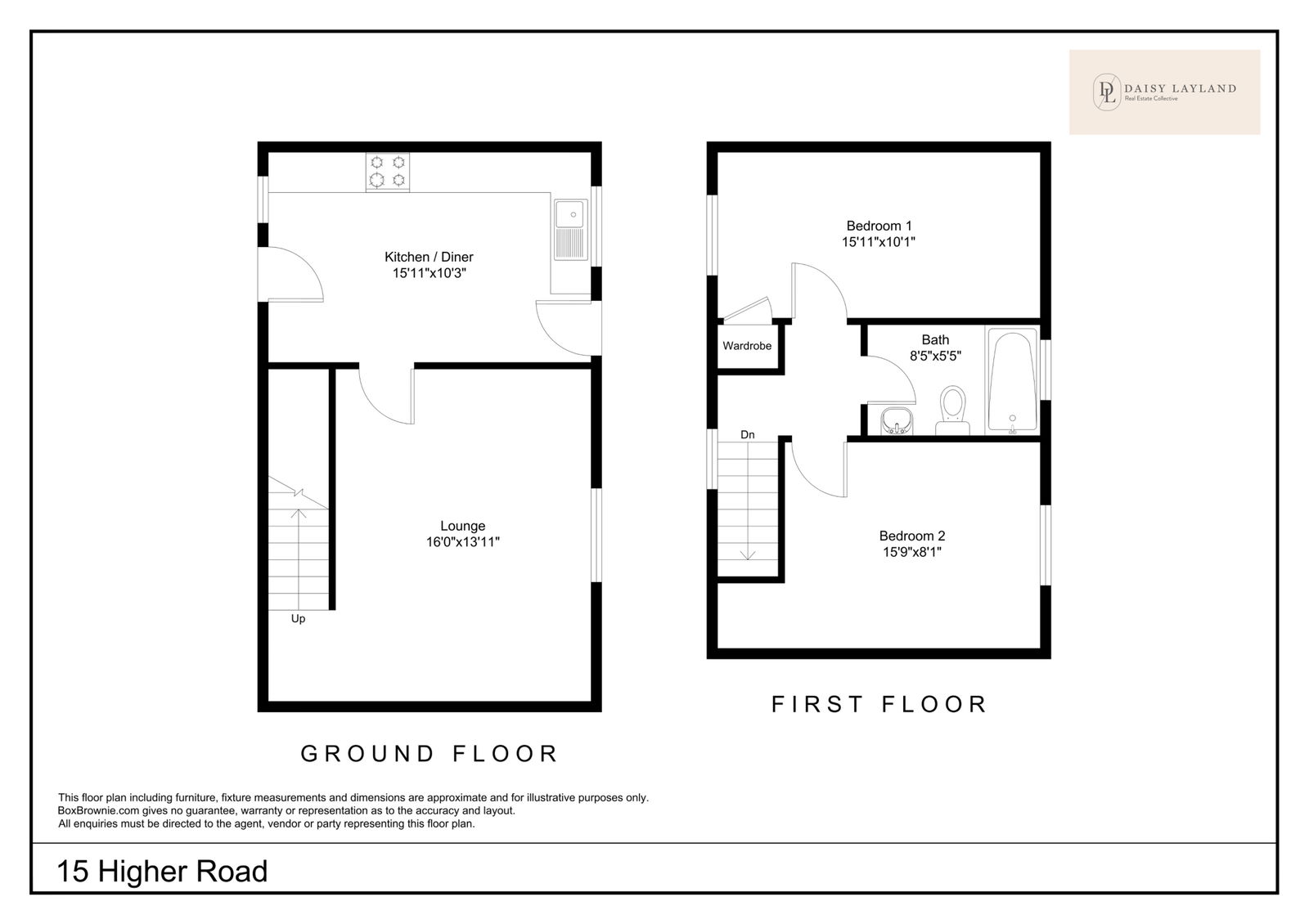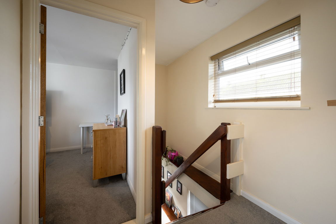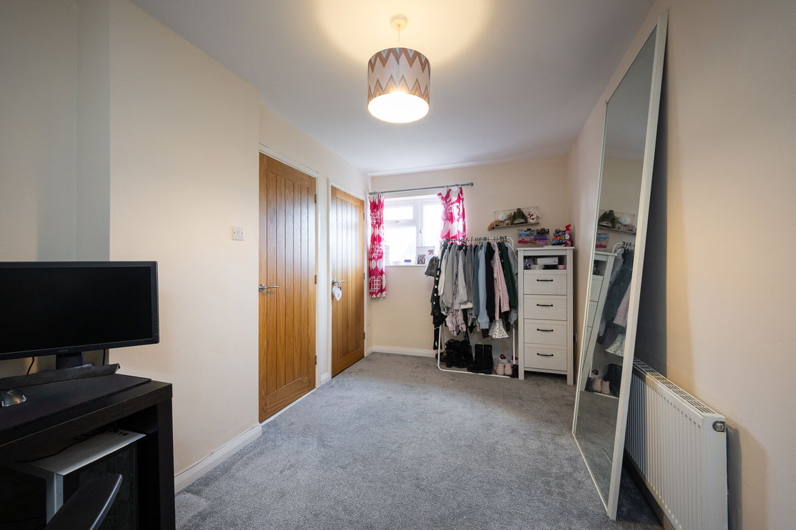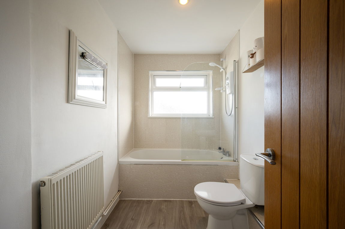 Upstairs, there are two generously sized double bedrooms, one of which benefits from a useful built-in storage cupboard. The accommodation is completed by a well-presented bathroom fitted with a bath and shower over.